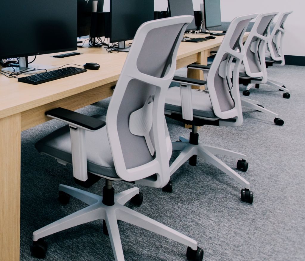 The Archie chair was selected in three variants: sled base and barstools for the café, atrium and informal spaces; and a version with wooden legs for the library. With clean lines and ergonomic design, Archie bridges both relaxed and structured settings. In the IT suites, Yoyo chairs with grey mesh backs offer lightness and support, while echoing the building’s sleek tech-inspired aesthetics.