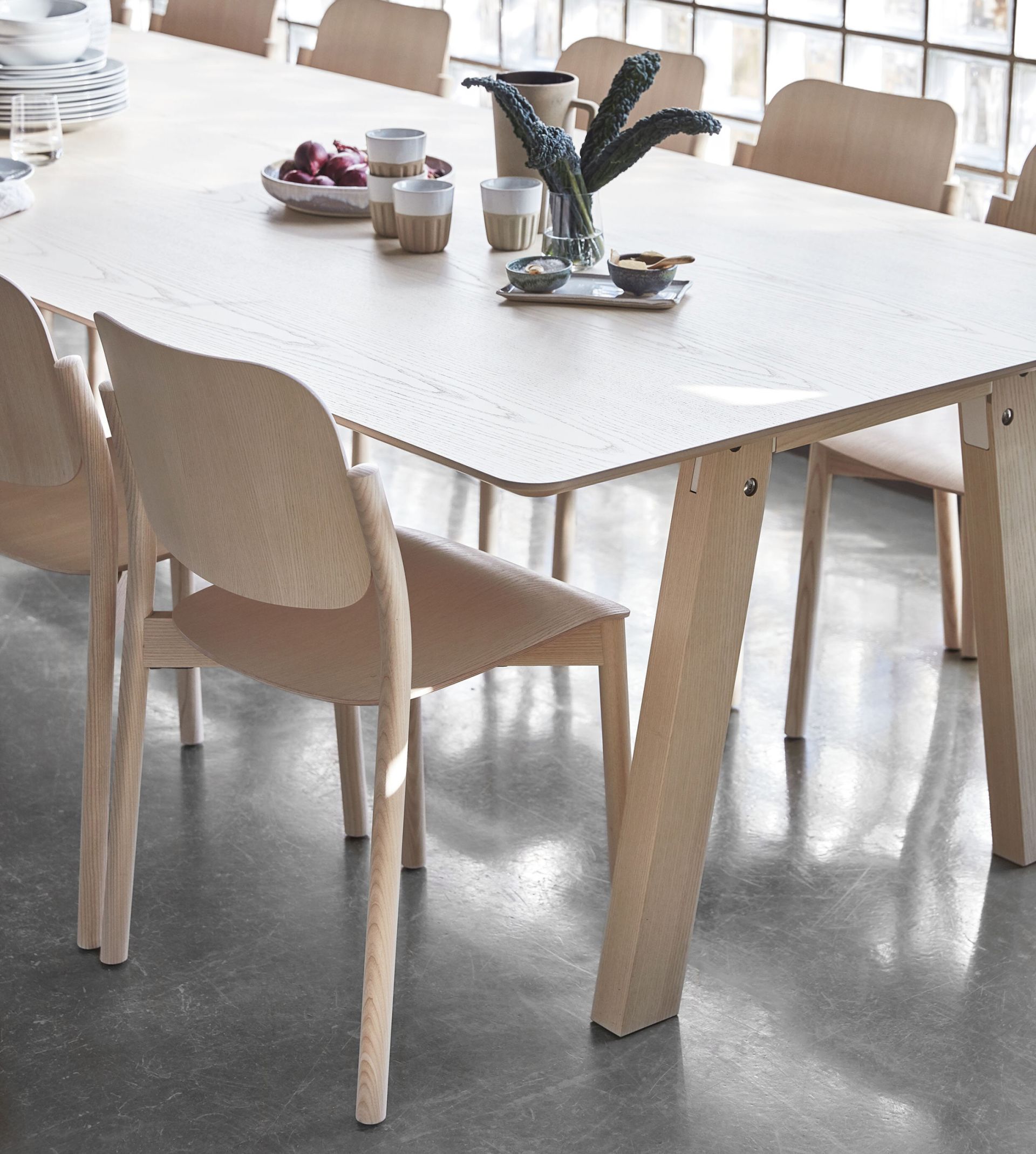 Collaborate is available in more than 50 sizes and can be the centre point of the meeting room, but also the small, handy surface set to one side – or the sociable area. The table is easy to add to projects because you can combine several variants to create a uniform impression that simultaneously fulfils a range of functions and needs. You can choose the material, shape and leg height, together with the material, size, shape and edge style, so Collaborate will fit perfectly into your conference room, lounge or dining room. A-legs are available in wood or metal. Tall legs transform Collaborate into a standing table that saves valuable space in smaller rooms or shared areas.