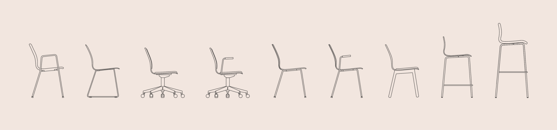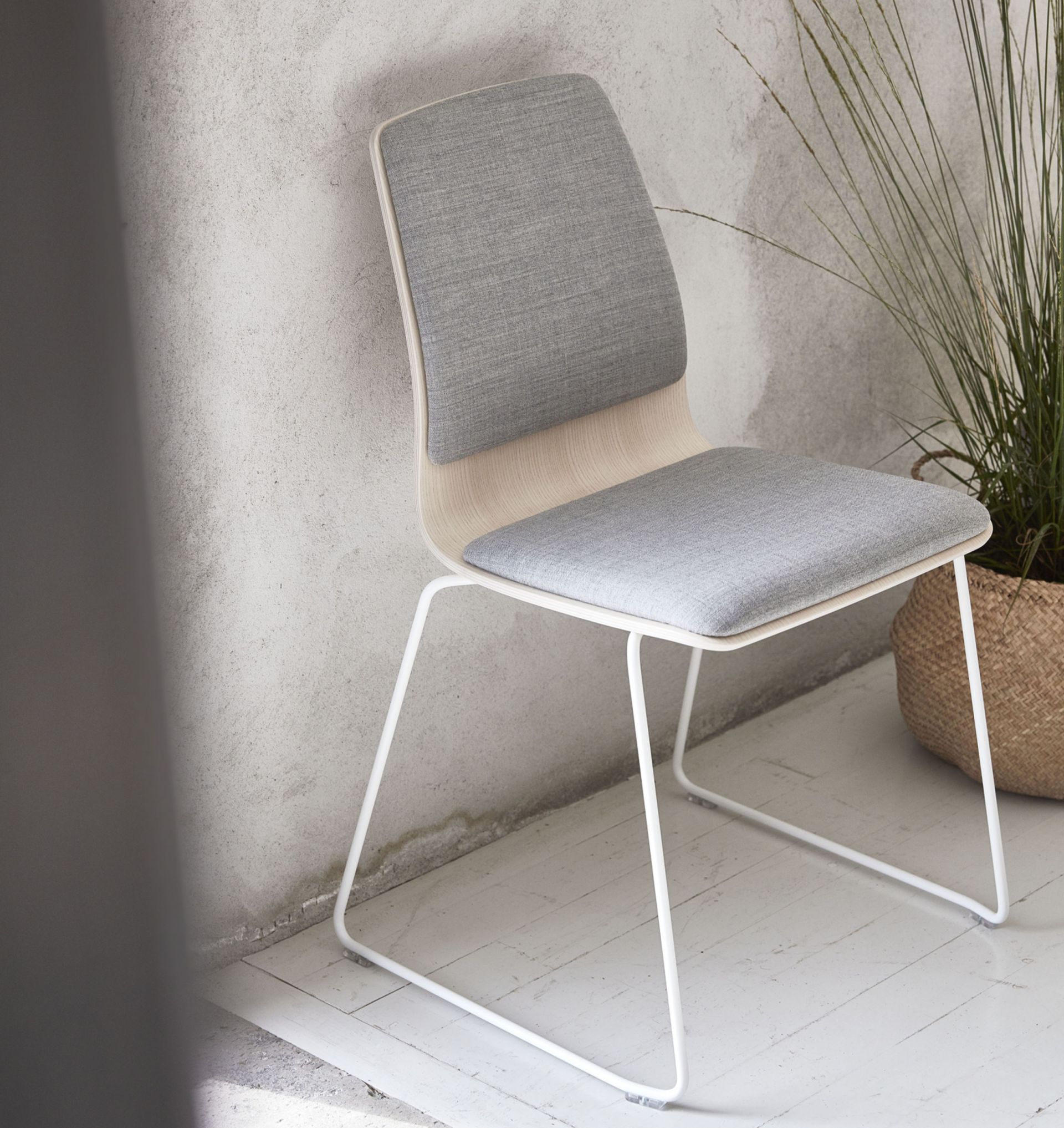 You can choose to upholster the whole chair or only parts of it – for example just the seat or back. Nova is available with frames in metal, customisable in different RAL colours, wood or a rotating base in plastic. The metal frame is available in a variant with a sledge base. The chair is also available in an unupholstered version, paired with any frame, and can be specified with open or closed armrests. The wealth of options available lets you shape Nova to suit your needs, preferences and interior – making it a go-to choice for those who value design, sustainability and ergonomics in one and the same product.