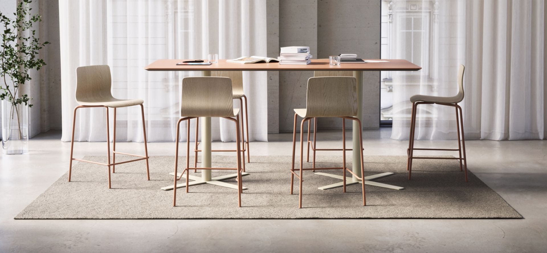 Nova is available as a stackable bar stool, designed for flexible spaces where people come together to work, socialise and collaborate.