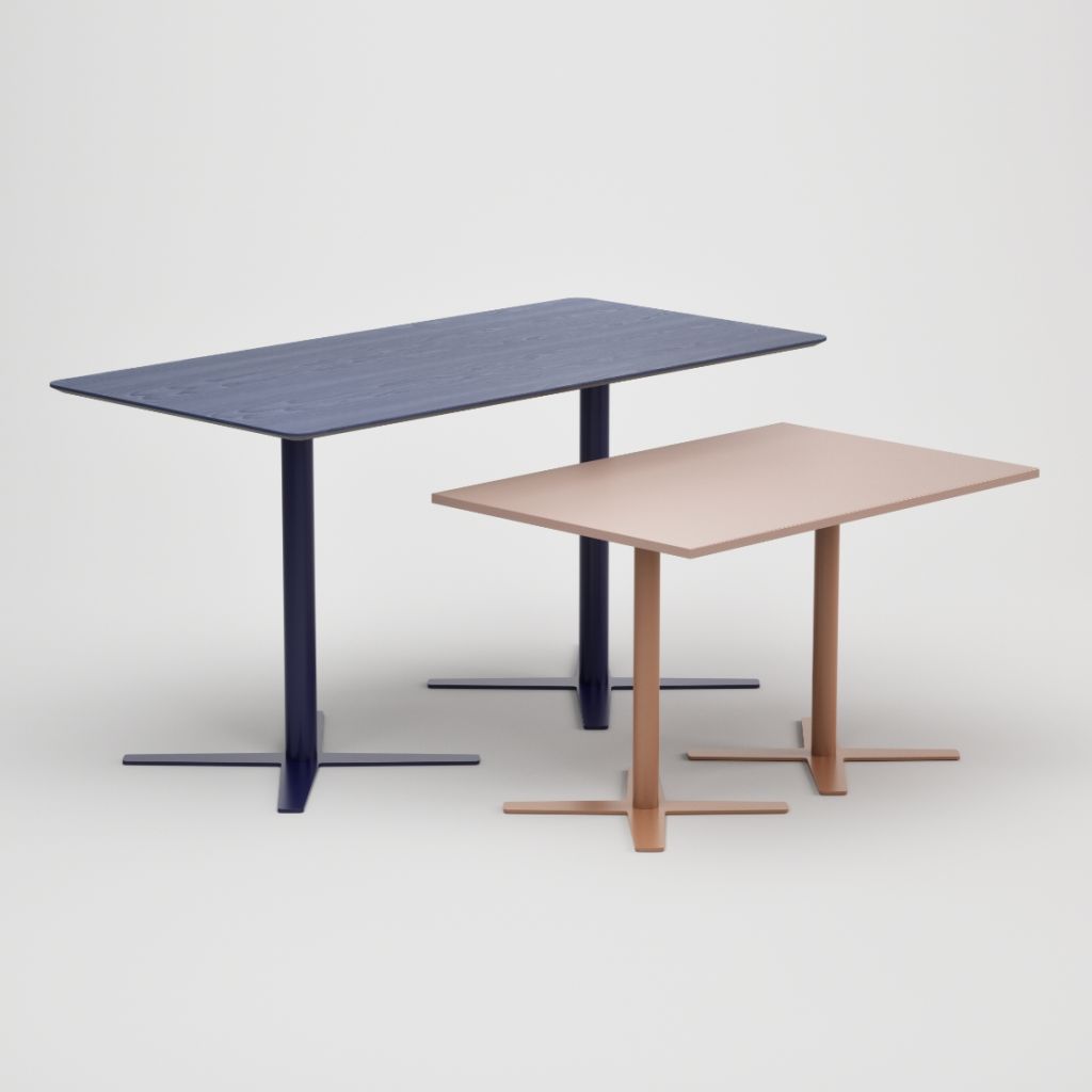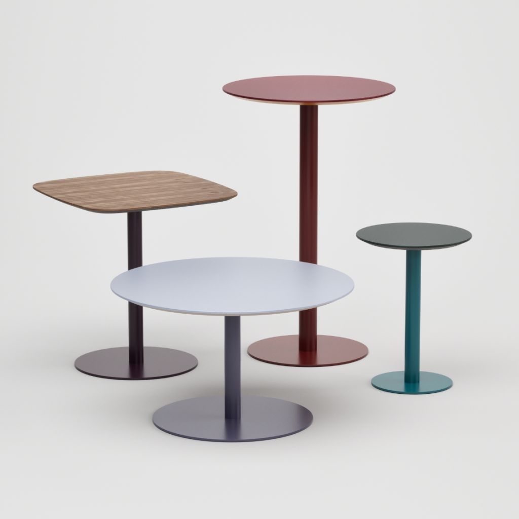 Den flexibla bordsfamiljen finns med stativ i flera olika höjder, bordsskivor och ytskikt samt med rund fot och kryssfot.