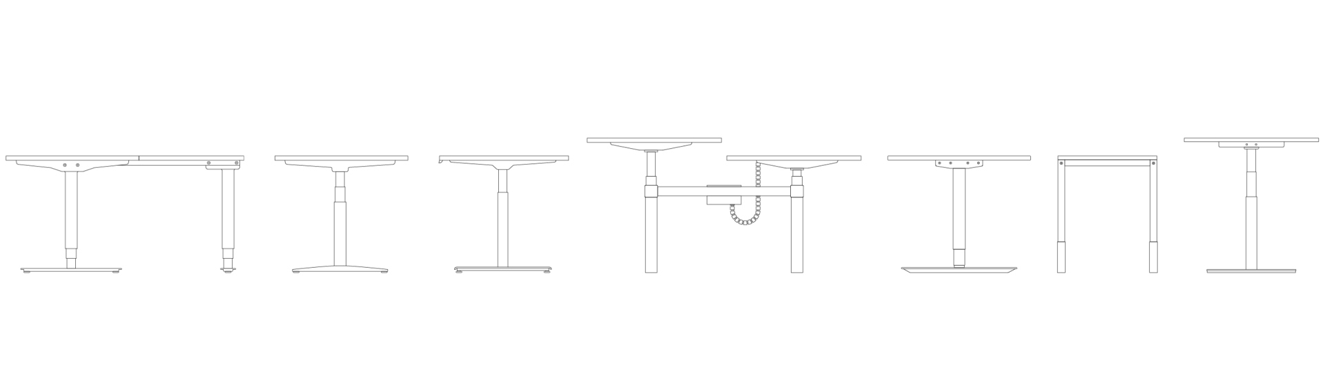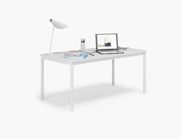 Med integrerade tillbehör för sammankoppling och kabelhantering samt skärmar är det enkelt att bygga ihop flera skrivbord och samtidigt dölja tekniken. Systemet är höj- och sänkbart och kan byggas ut, anpassas eller delas upp i enskilda skrivbord i takt med att behoven förändras. Raka benavslut utan T-fot förstärker den stilrena känslan.