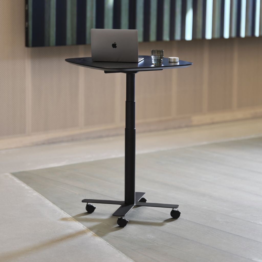 Höj- och sänkbara Solo är ett lättplacerat och platseffektivt pelarbord med många användningsområden. Med en flexibel och minimalistisk design passar Solo som arbetsbord i mindre kontorsytor samt som ståbord eller avlastningsbord i lounge, eventmiljöer eller konferensrum. Med tillval som hjul och batteripaket kan bordet bli helt mobilt – perfekt för miljöer där rörlighet och kompakt design är viktigt.