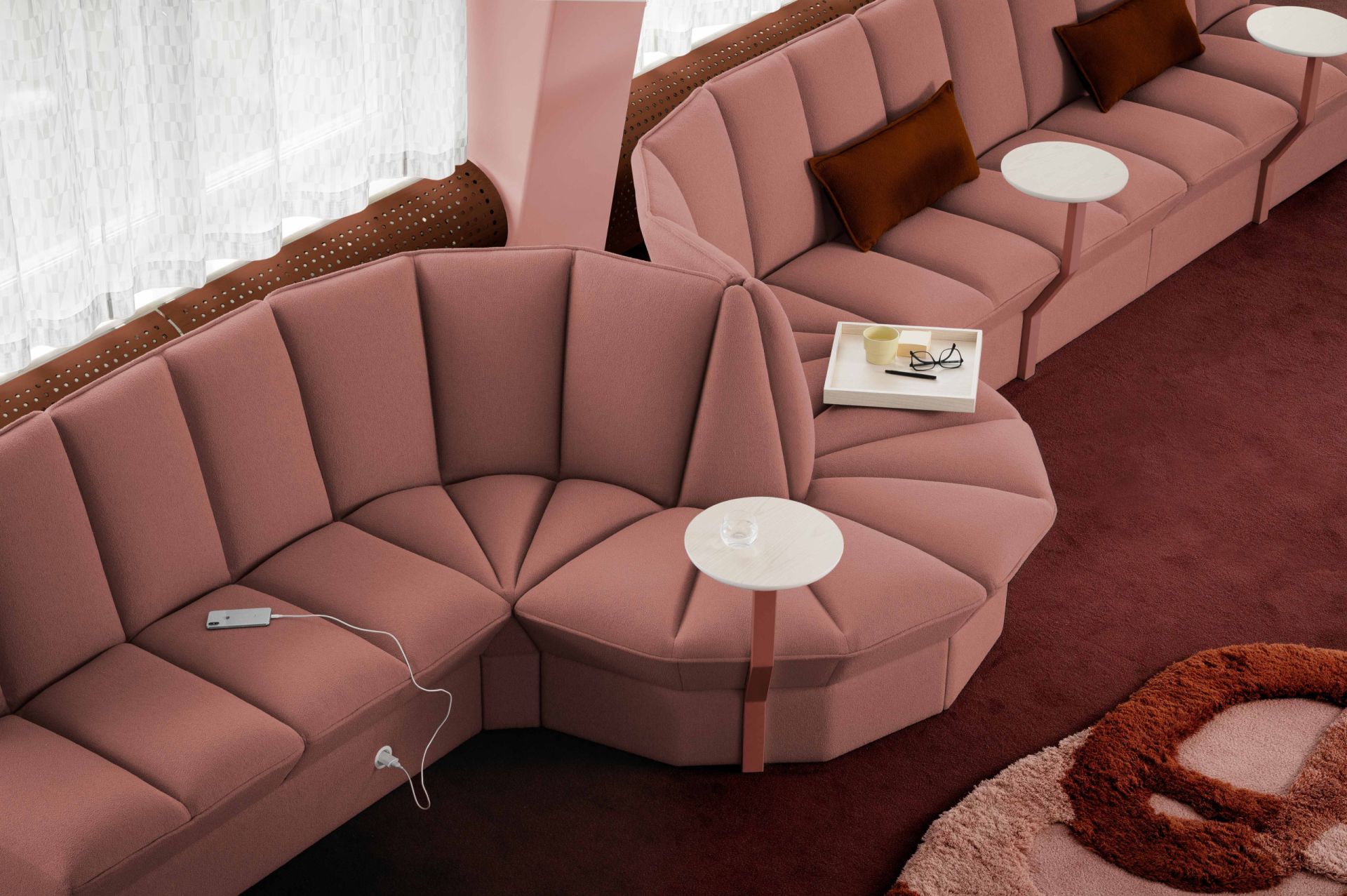 Företagsloungen kan inredas med Mingle Lounge i färger som sticker ut och tar för sig.