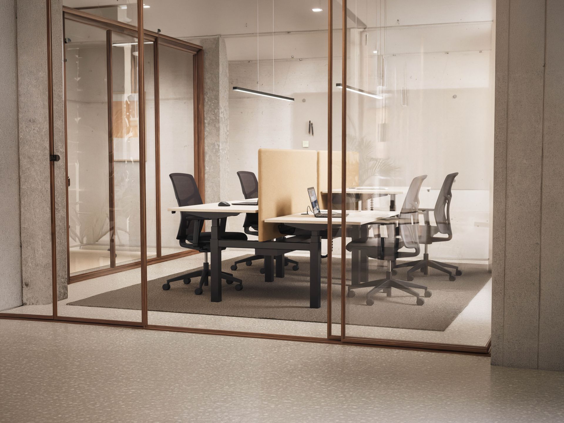 Bench finns i flera utföranden och kan anpassas med olika skärmar, bordsskivor och stativ. Genom val av material och färger kan Bench skräddarsys ytterligare för att harmoniera med den övriga interiören. Det gör det möjligt att utforma arbetsplatser som passar rummets arkitektur och verksamhetens behov – utan att kompromissa med helhetsintrycket.