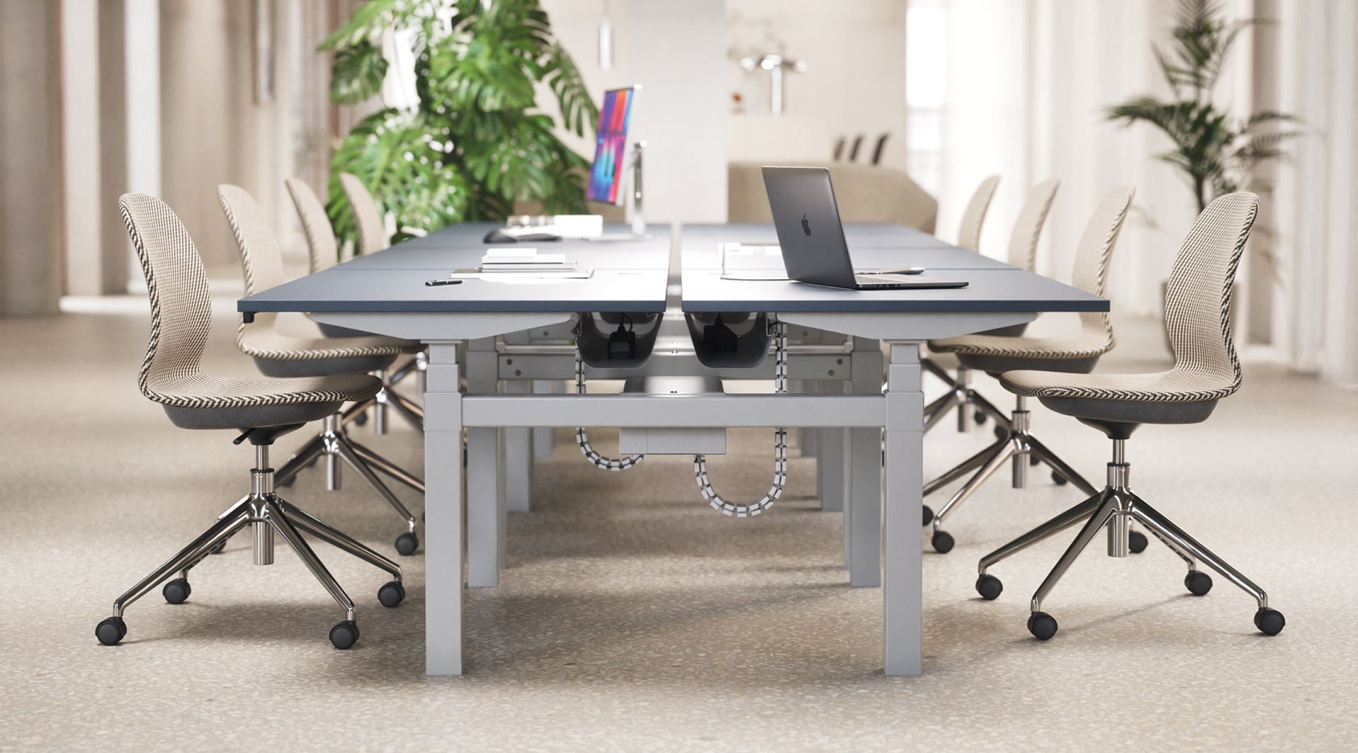 Bench erbjuder individuellt höj- och sänkbara skrivbord, kabelhantering, skärmar och tillbehör i ett komplett system som förenklar planering och inredning. Konstruktionen gör det enkelt att bygga ihop och koppla samman flera arbetsstationer – och samtidigt dölja tekniken. Genomtänkta lösningar för kabelhantering bidrar till en arbetsplats som är lätt att hålla organiserad över tid. Resultatet är en renare och mer harmonisk miljö, där varje detalj bidrar till helheten.